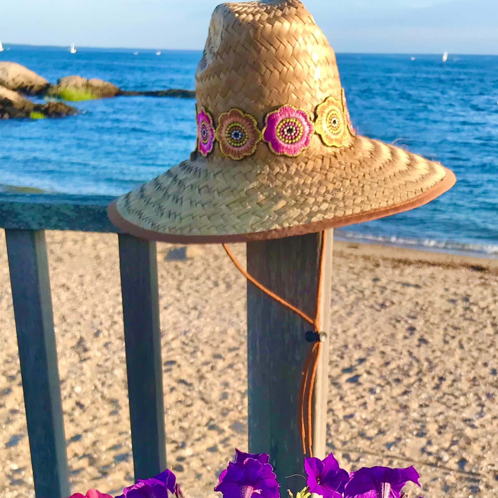 Perfect for a morning walk, biking, a day on the boat or a lazy days on the beach. The neck tie keeps the hat secure on your head especially on windy days. Super stylish too!